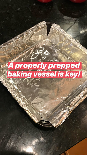 - FOR THE CRUST: Adjust oven rack to middle position and heat oven to 350 degrees. Make foil sling for 8-inch square baking pan by folding 2 long sheets of aluminum foil so each is 8 inches wide. Lay sheets of foil in pan perpendicular to each other, with extra foil hanging over edges of pan. Push foil into corners and up sides of pan, smoothing foil flush to pan.